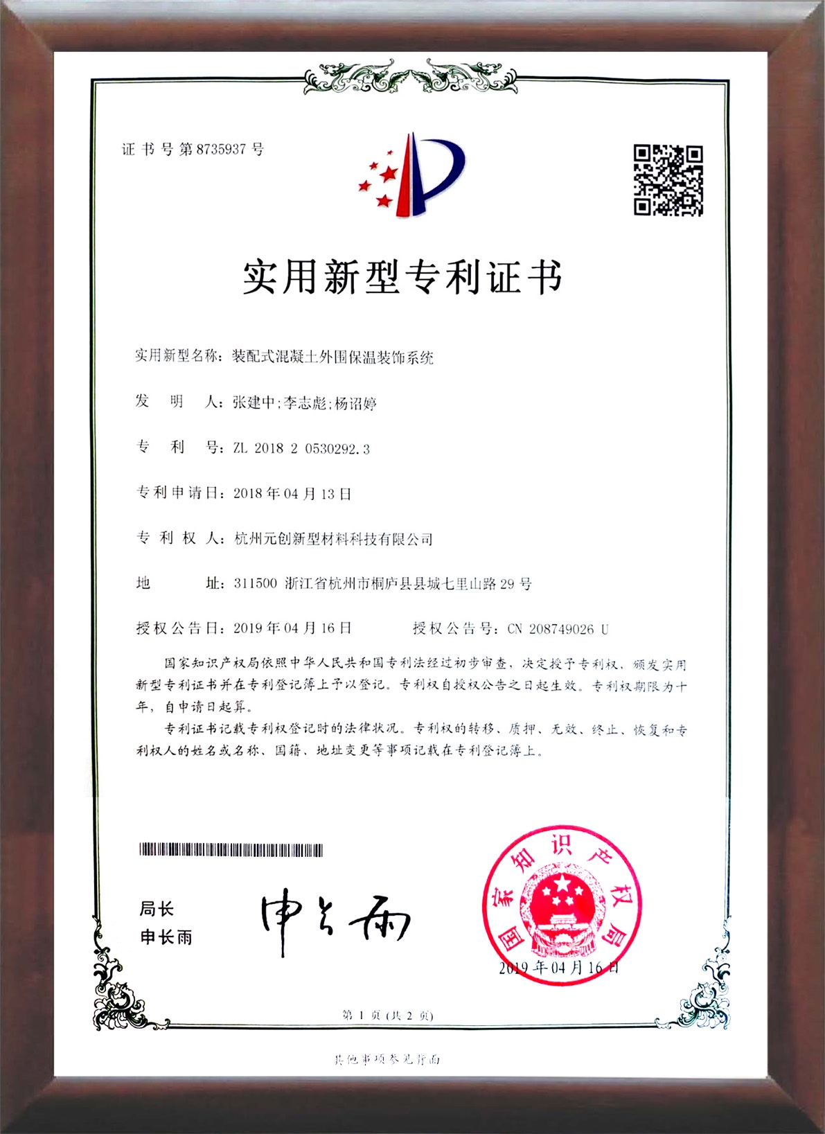 公司與華東勘測(cè)設(shè)計(jì)研究院、浙江省建筑設(shè)計(jì)研究院、杭州市建筑設(shè)計(jì)研究院、浙江大學(xué)、gad浙江綠城建筑設(shè)計(jì)研究院建立研發(fā)與應(yīng)用的合作,成立省級(jí)科技研發(fā)中心,承接2021年浙江省科技廳“尖兵”“領(lǐng)雁”項(xiàng)目——“低能耗可溯源建筑外墻圍護(hù)結(jié)構(gòu)保溫裝飾一體化板關(guān)鍵技術(shù)研究及示范”。先后完成科技成果轉(zhuǎn)化13項(xiàng)、實(shí)用新型專利52項(xiàng)、發(fā)明專利9項(xiàng)、受理發(fā)明專利10項(xiàng),省級(jí)科研成果17項(xiàng)并取得了良好的成果轉(zhuǎn)化預(yù)期。